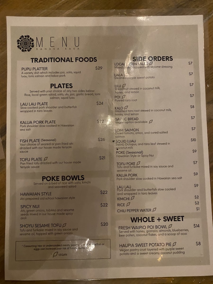 Kanaka Kava offers a menu that reflects the relaxed, authentic spirit of Hawaiian dining with a focus on simple yet satisfying plates and traditional beverages. The selection leans toward comforting local dishes and distinctive drinks that invite guests to slow down and enjoy the flavors of the islands.